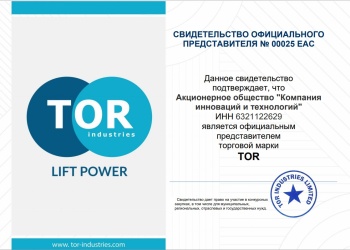 Данное свидетельство подтверждает, что Акционерное общество "Компания инноваций и технологий" ИНН 6321122629 является официальным представителем торговой марки TOR (Свидетельство дает право на участие в конкурсных закупках, в том числе для муниципальных, региональных, отраслевых и государственных нужд).