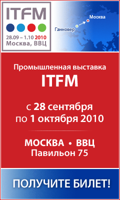 Международная промышленная выставка ITFM – беспрецедентное промышленное событие, являющееся аналогом всемирно известной Ганноверской промышленной ярмарки. Место проведения: Всероссийский выставочный центр ВВЦ. Международная промышленная выставка ITFM - аналог Ганноверской промышленной ярмарки в России, состоится с 28 сентября по 01 октября 2010 г. в Москве на ВВЦ, в новом павильоне 75.