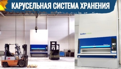 Компания Айкхофф-Сибирь использует автоматизированную систему хранения карусельного типа MEGMAT RS350 производства KARDEX REMSTAR (вн. размеры 3875х1651х4510 мм, количество полок 19, общая грузоподъемность 3248 кг.).