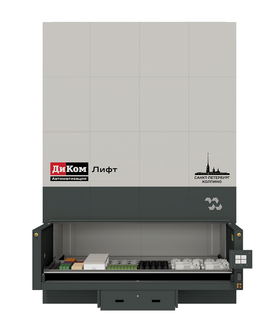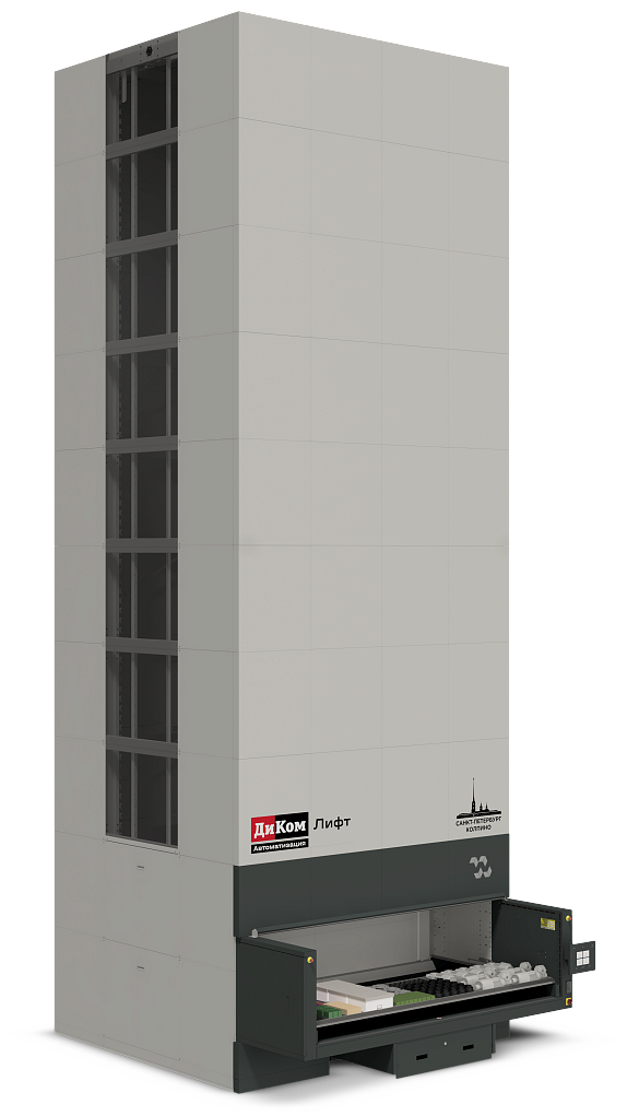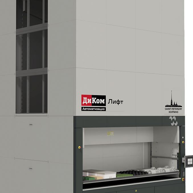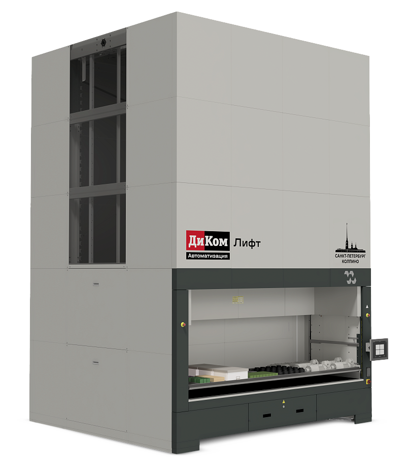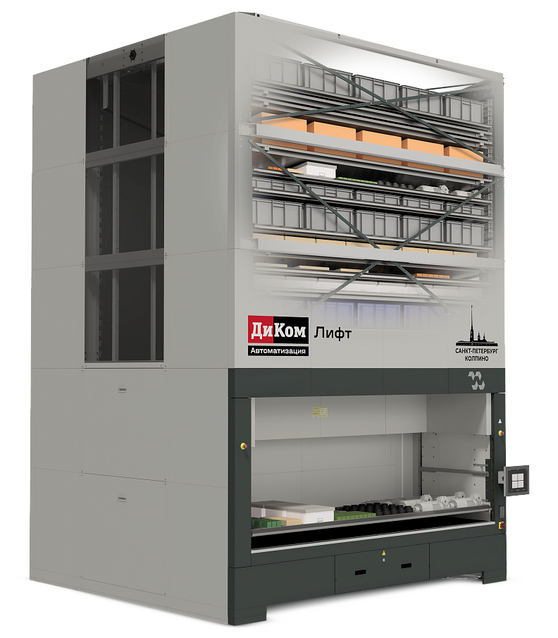 Автоматизированный склад лифтового типа ДиКом-Лифт 2500-850 (Россия) - вертикальный автоматический склад для хранения различных мелких и среднегабаритных грузов на складе и производстве.
