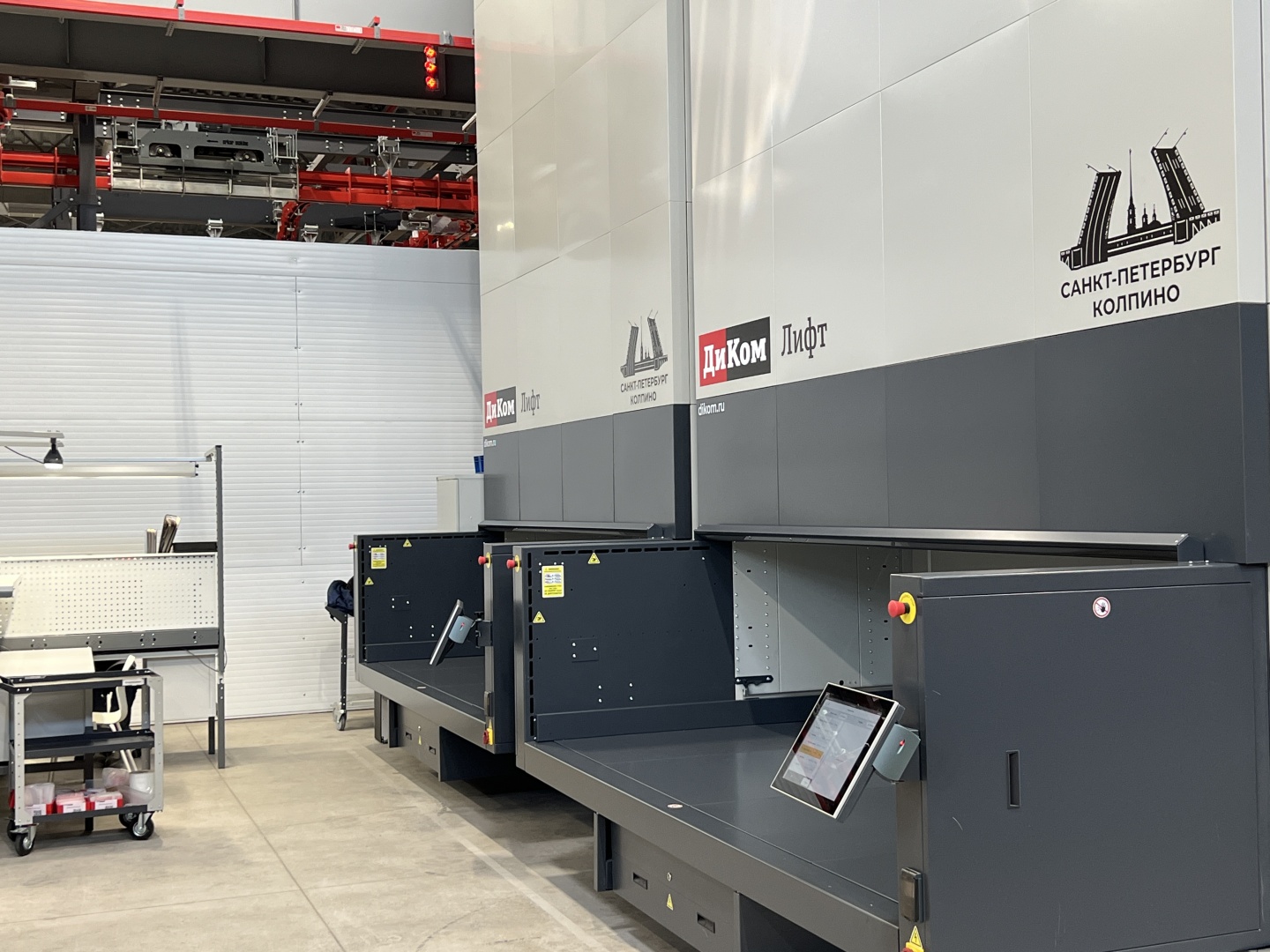 Кроме того, автоматический склад «Диком-Лифт» полностью заменяет склады-мезонины, занимая при этом меньше места. Благодаря этому решению автоматизируются процессы перемещения грузов и их адресного учёта.