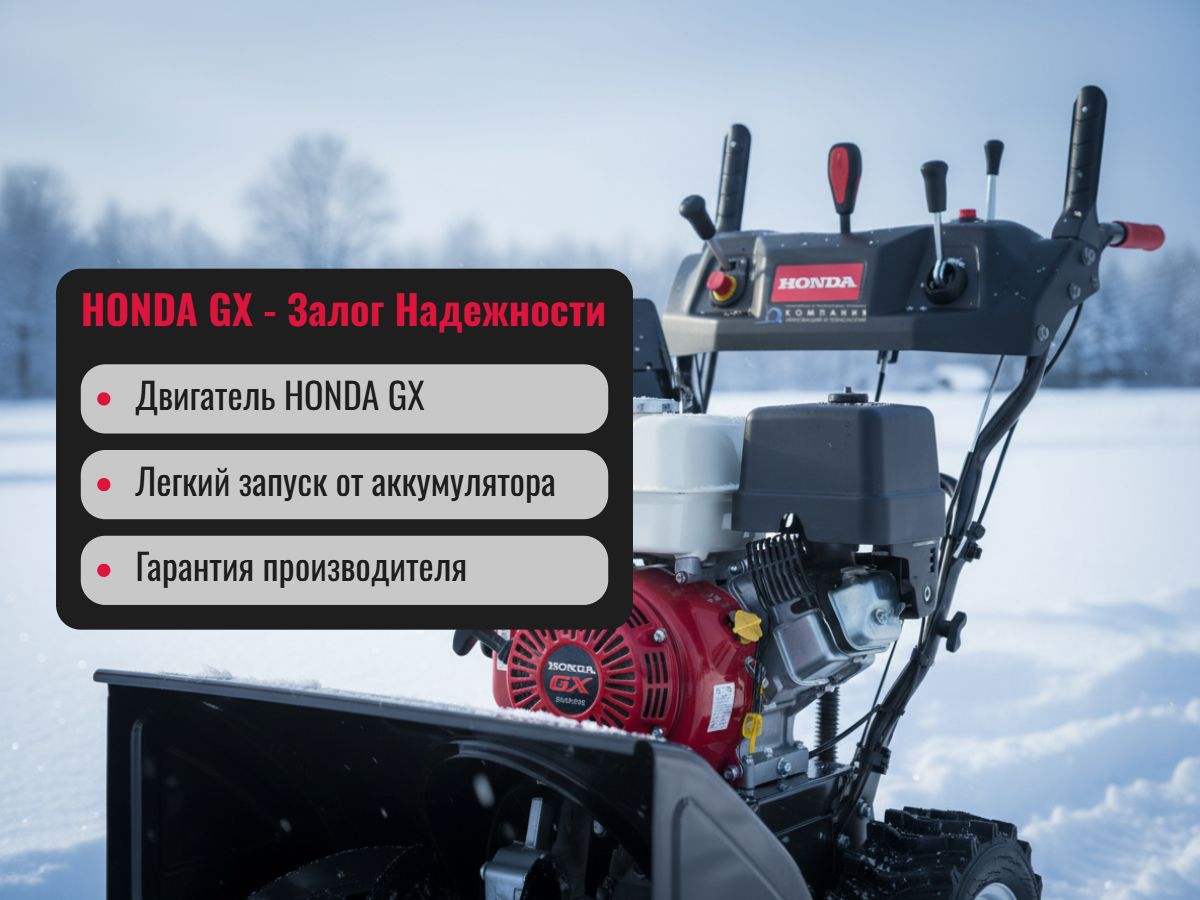 Непревзойденная надежность: сердце машины — профессиональный двигатель Honda GX серии, известный своим ресурсом и стабильной работой в любые морозы.