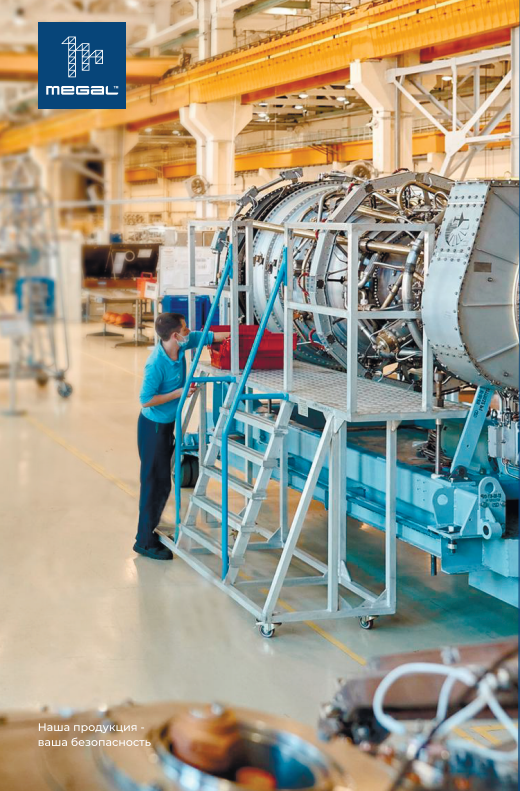 Авиационная боковая платформа для обслуживания вертолета Megal ПОА П правое исполнение - алюминиевая платформа с ограждением для организации рабочего места для проведения ремонтных и сервисных работ вертолетов.