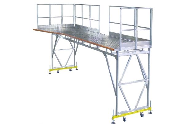 - Безопасная работа на площадке, выполненной из рифленого листового алюминия с ограждениями.