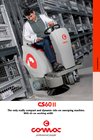 Многофункциональная подметальная машина с местом для водителя COMAC CS 60 B II - аккумуляторная подметально-всасывающая машина для подметания и уборки внутренних помещений на складе, производстве и торговле площадью до 3850 кв. м в час.