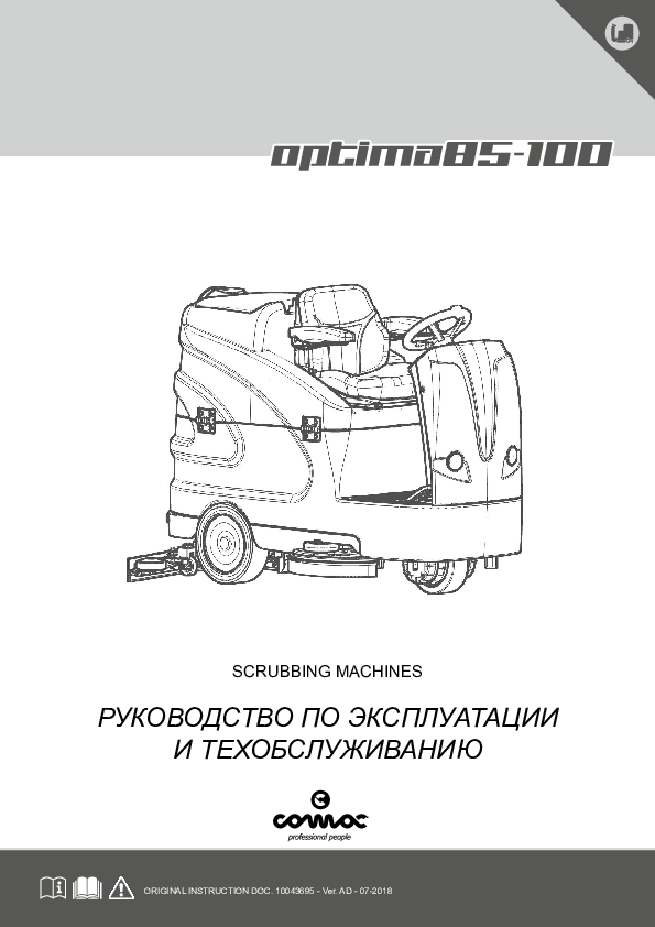 Поломоечная машина с местом оператора COMAC OPTIMA 85B - это большая самоходная аккумуляторная поломоечная машина с сидением для уборки производственных, складских и торговых площадей.