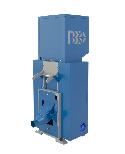Дробилка DLU, где D - дробилка, L - V-образная конфигурация ножей по типу "ласточкин хвост", U - выгрузка пневмотранспортом. Подходит для сухих тонкостенных материалов и дальнейшей транспортировки в следующий узел переработки.