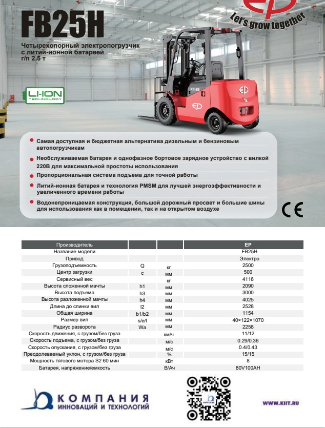 Вилочный погрузчик EP FB25H с литиевой АКБ