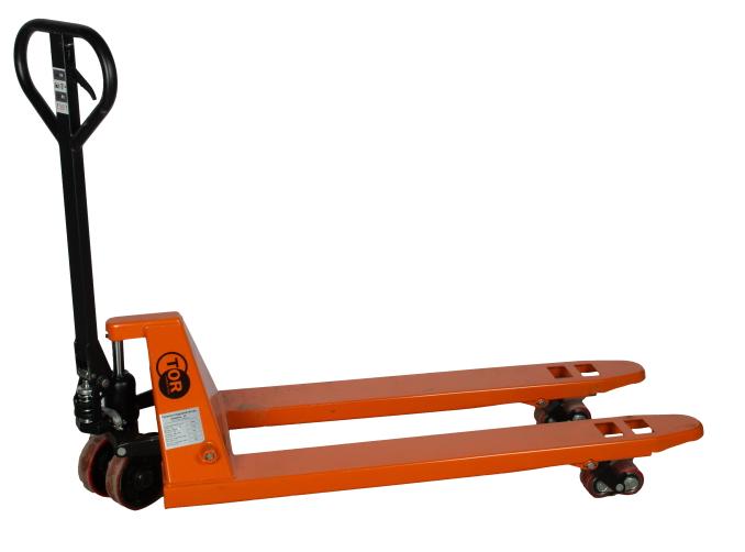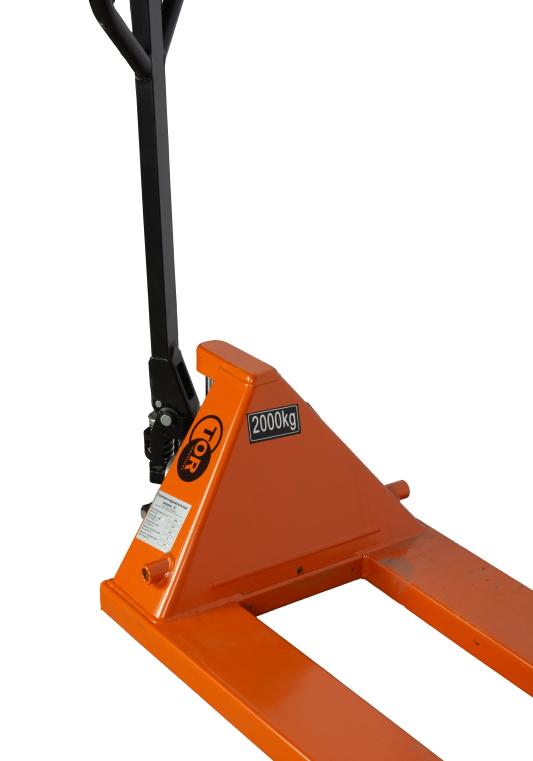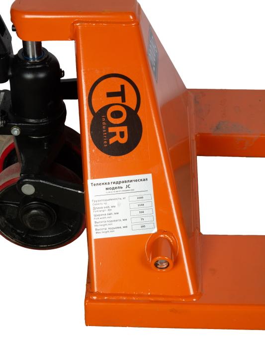 Ручная гидравлическая тележка TOR JC 2000 грузоподъемностью 2000 кг для работы на складе, производстве и в магазине.