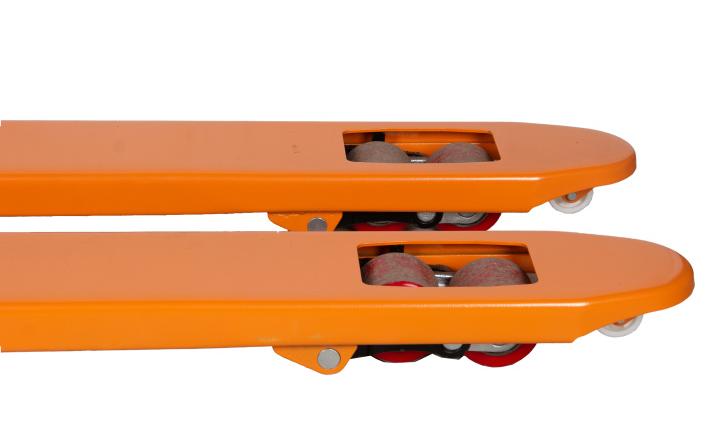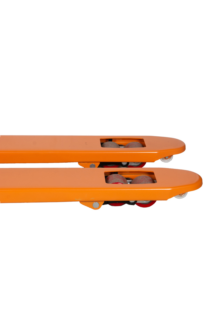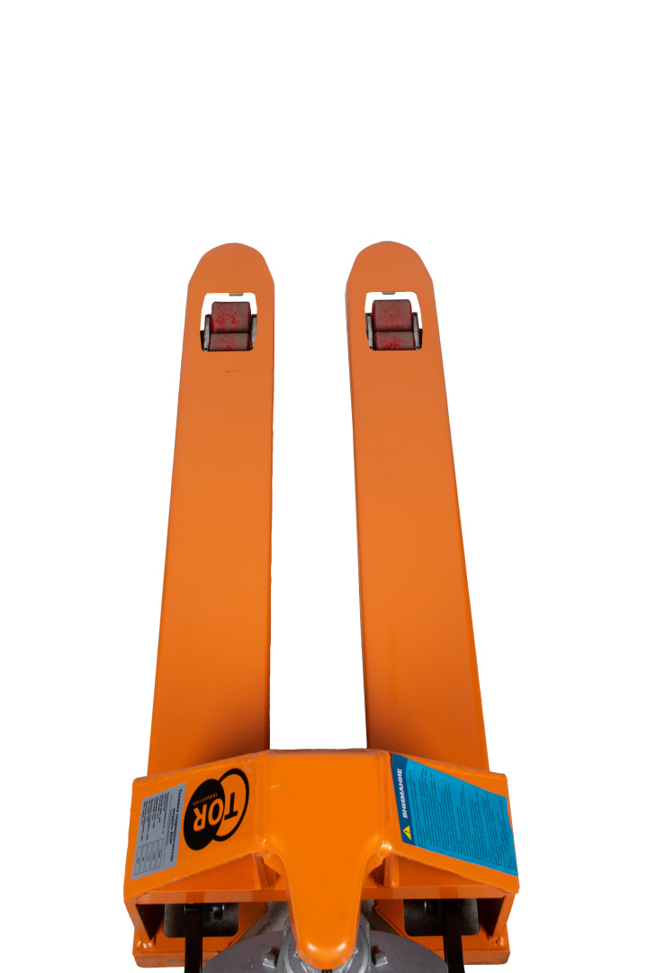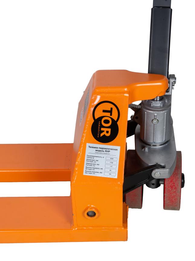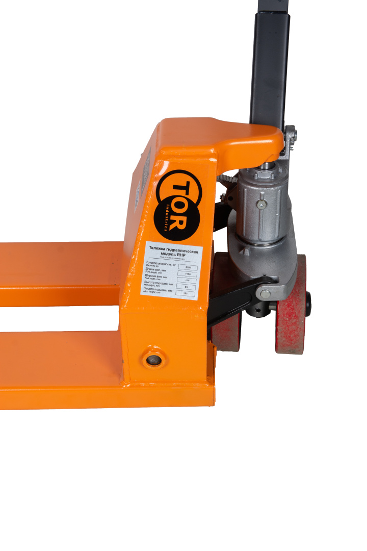 Ручная гидравлическая тележка TOR RHP 2500 с узкими вилами (1150х450 мм) и полиуретановыми колесами рассчитана на грузоподъемность до 2500 кг. Она идеально подходит для работы с нестандартными грузами на складе, производстве и в магазине.