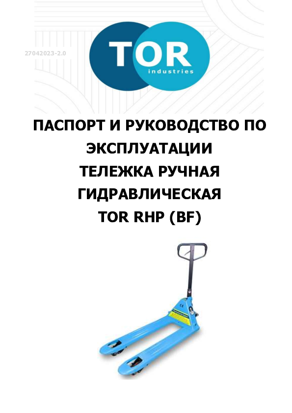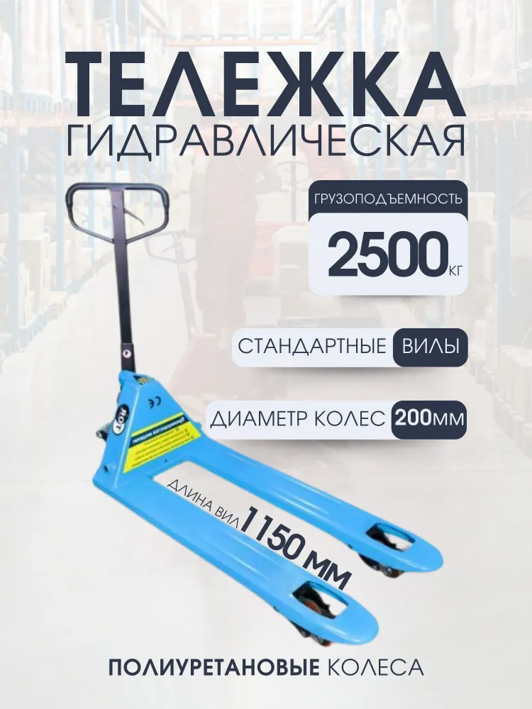 Ручная гидравлическая тележка TOR RHP 2500, 1150ММ (BF) грузоподъемностью 2500 кг для работы на складе, производстве и в магазине.