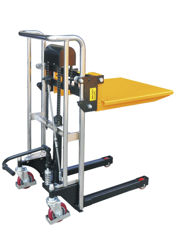 Гидравлический штабелер "легкого класса". Оснащен грузовой площадкой, что позволяет обрабатывать грузы любой конфигурации. Предназначен для обработки грузов до 400 кг. Имеет малый собственный вес. Рекомендован для использования в торговых залах, СТО, внутри выставочных павильонов и аналогичных местах.
