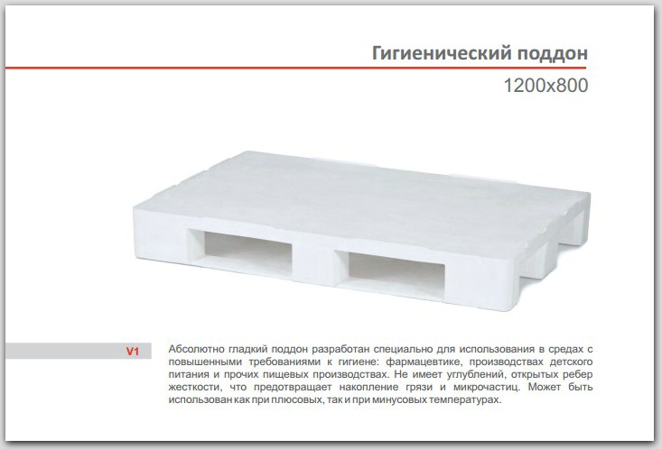 Гигиенические полимерные поддоны используют на производствах с повышенными требованиями к чистоте и гигиене. Благодаря абсолютно гладкой поверхности, отсутствию перфораций и внутренних пустот не происходит скопление грязи.