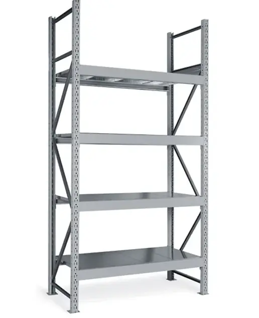 Универсальный металлический грузовой полочный стеллаж ДиКом СТ-051 (Россия) для хранения различных грузов на складах, в магазине и на производстве.