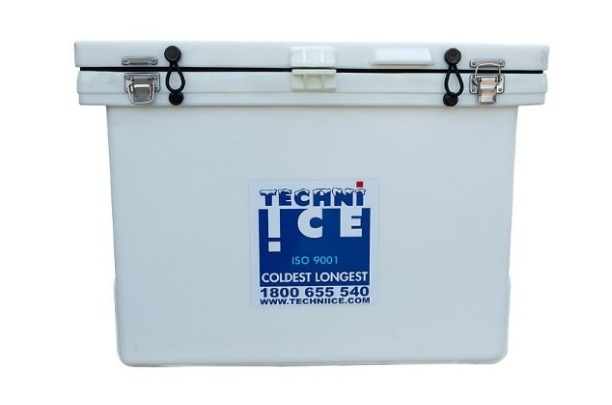 Пластиковый белый ящик с крышкой Techniice Классик 100 Л (Австралия) - изотермический контейнер на 100 литров размерами 51х70,5х51 см для хранения и транспортировки замороженной продукции до 27 часов, при температуре окружающего воздуха +25°С + 28°С на производстве, складе и в магазине.