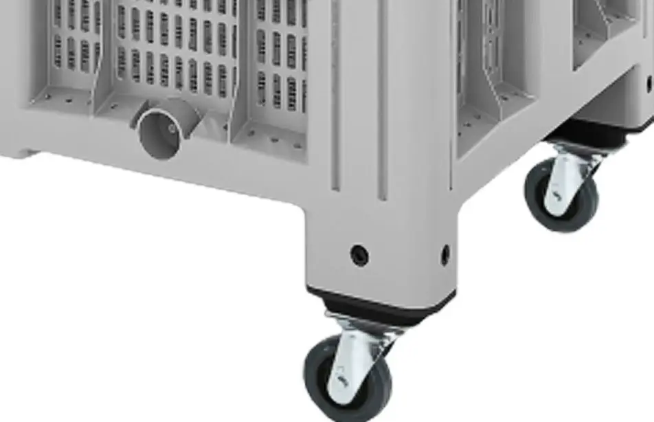 - Четыре удобных колеса служат для простоты перемещения загруженного крупногабаритного пластикового контейнера с места на место.