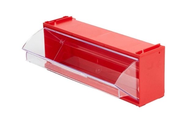 Короб откидной Стелла-техник Mini 102-1 (300х96х112) красный/прозрачный предназначен для хранения мелкоштучных изделий. Данная система хранения не подвержена случайному опрокидыванию. Внутренний полезный размер ячейки 283х65х70мм.