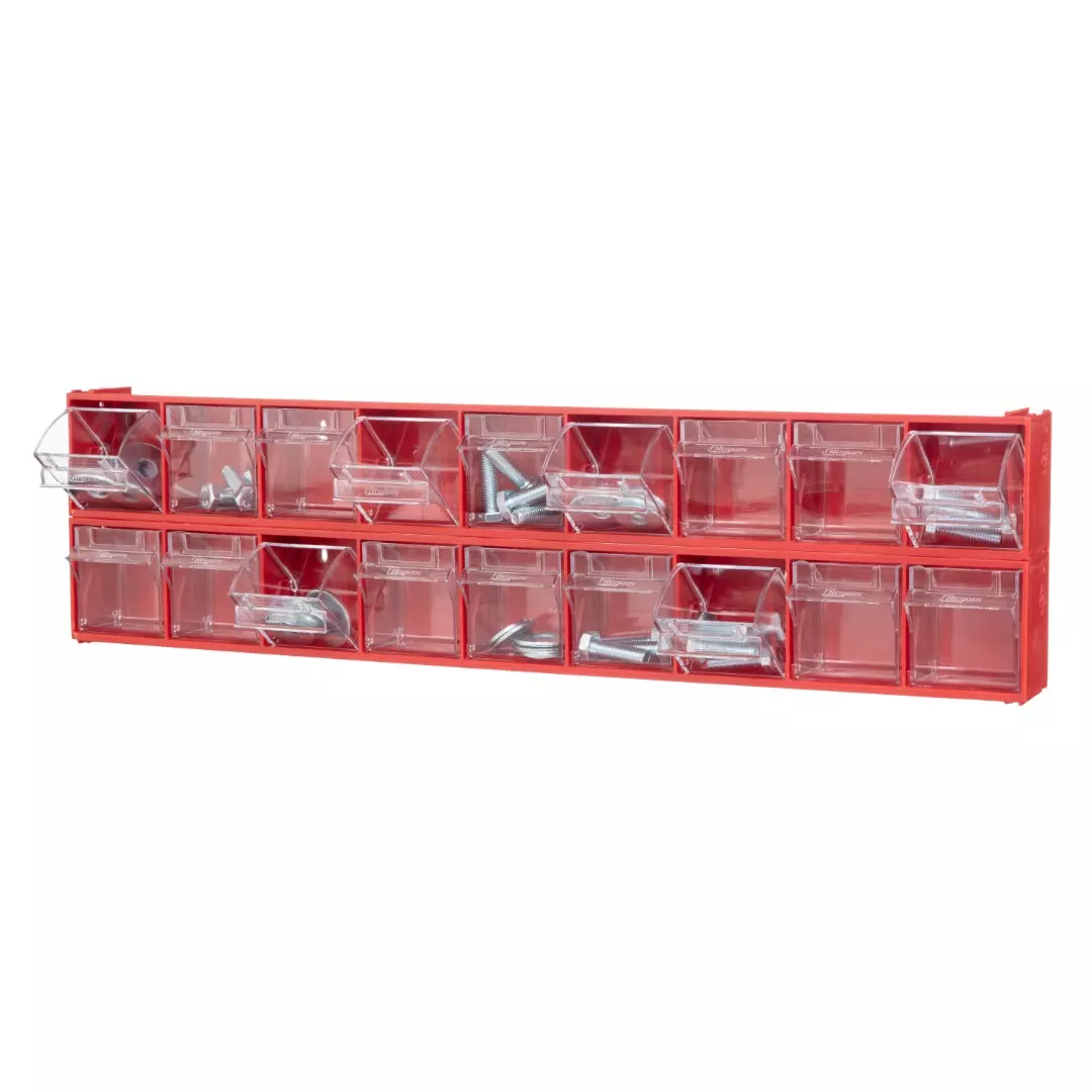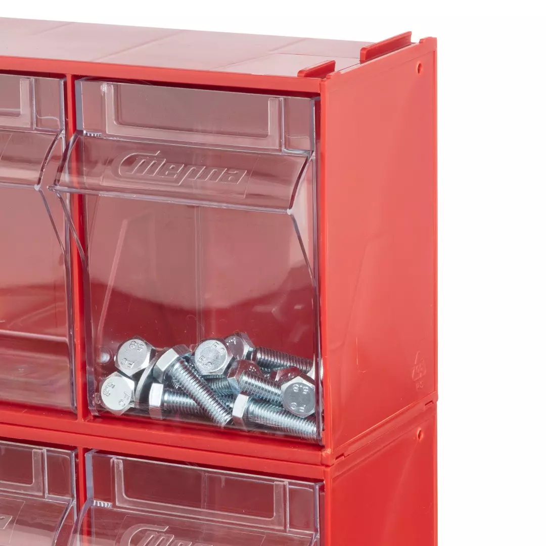 Короб откидной Стелла-техник F-600-9, 600х68х78 мм, 9 ячеек, красный, прозрачный