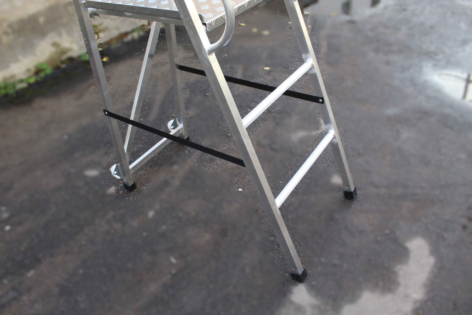- Безопасная эксплуатация, которая обеспечивается за счет нескольких конструктивных особенностей – изготовления рабочей площадки из рифленого алюминия.
