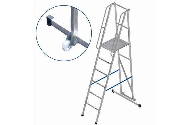 Передвижная алюминиевая лестница-платформа ЛПФВА-5 с траверсой