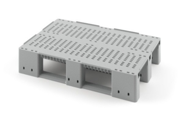 Пластиковый поддон на трёх полозьях усиленный двумя трубами iPlast 02.117.Т206 1200x800x150 мм перфорированный серый