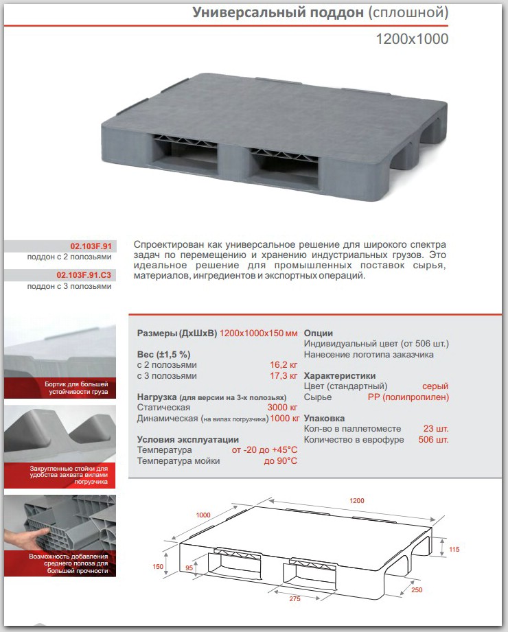 - Код заказа паллеты 02.103F.91.С3. на трех полозьях (усиленный).