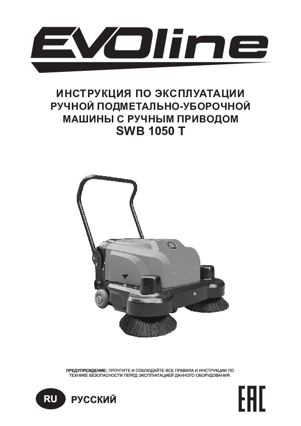 Подметальная машина EVOline SWB 1050 T | Ручная, ширина уборки 1050 мм, бак 35 л