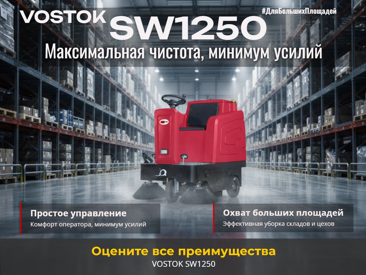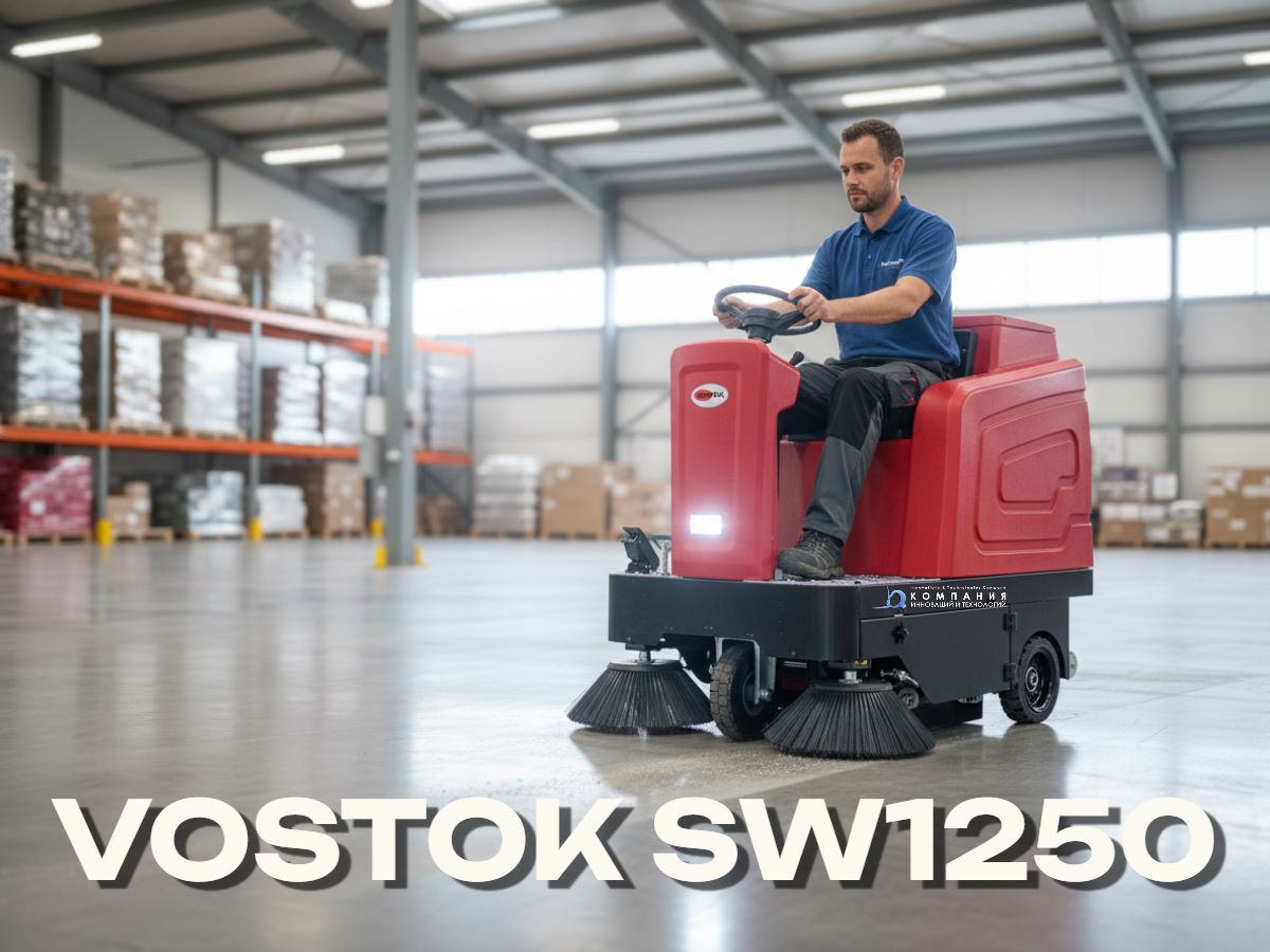 Подметальный машина райдер VOSTOK SW1250: комфортная тщательная уборка склада и производства