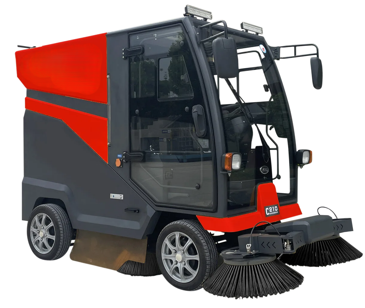 Коммунально-уборочная машина с вакуумным всасыванием С210 эффективно убирает песок, листву, иглицу, бумагу, камни, упаковку и другой мусор. Она комплектуется встроенной системой мойки высокого давления с шлангом и водяным пистолетом — для очистки как самой машины, так и различных уличных объектов: скамеек, урн, стен, рекламных наклеек, а также полива зелёных насаждений. Может превосходно убирать городские пространства, паркинги, так и производственные, складские и торговые здания и объекты.