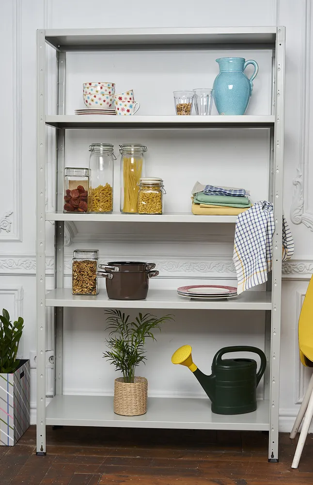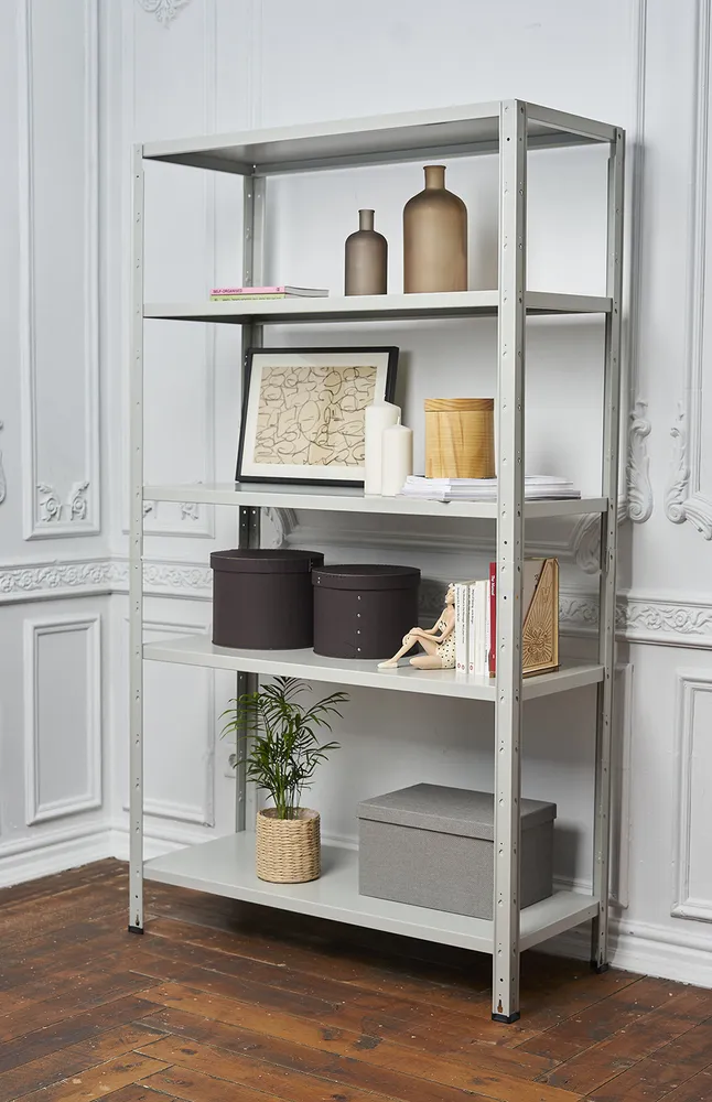 Универсальный металлический полочный стеллаж (5 полок) ДиКом СТ-011К (Россия) для хранения легких товаров и грузов в помещениях офисов, складов, в архиве, в гаражах, на дачах, на балконах и т.д.