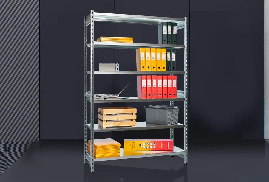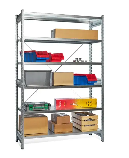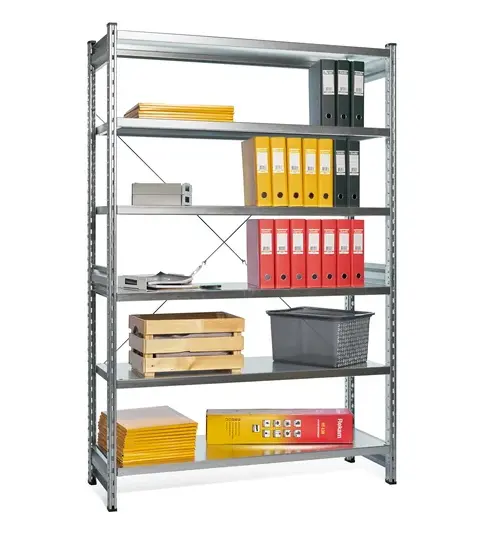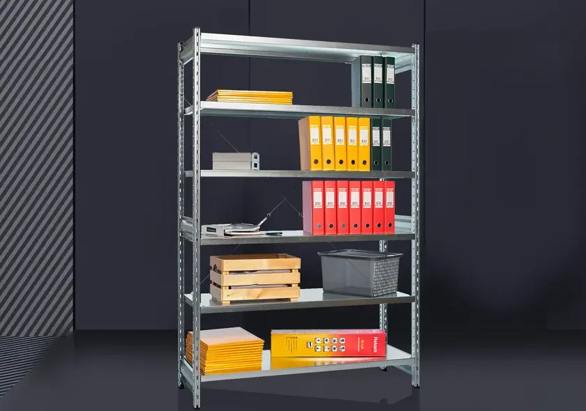 Универсальный металлический полочный стеллаж ДиКом СТ-031 (Россия) для хранения различных товаров и грузов на производстве и складах, в магазинах, гаражах, мастерских, в архиве.