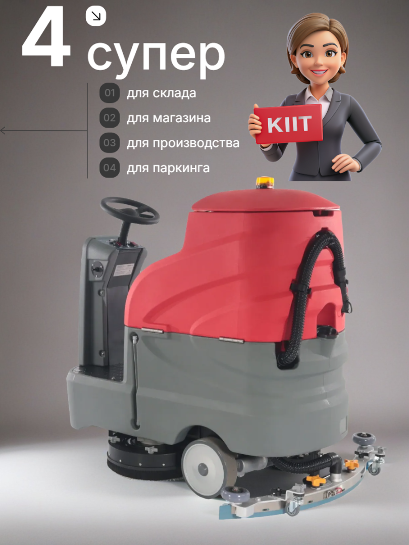АО "Компания инноваций и технологий" - КИИТ предлагает большой ассортимент полоуборочной техники, поломоечных машин и подметальных машин EVOLINE (Китай) различных размеров, назначения и исполнения, разработанной специально для российского рынка клининга и уборки. Универсальные поломоечные и подметальные машины для применения на складе, производстве и в магазине.
