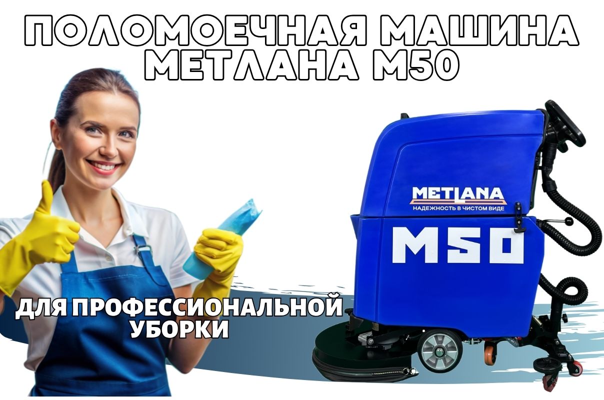 Ручная аккумуляторная поломоечная машина Метлана M50B с литиевой батареей гарантирует высокую автономность и максимальную эффективность на объектах с напряженным режимом эксплуатации: торговые и производственные помещения, с большим количеством людей.