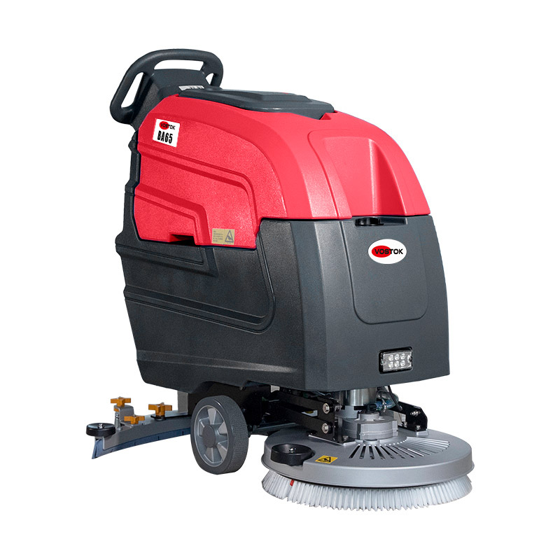Ручная аккумуляторная поломоечная машина с литиевой АКБ 87 Ач VOSTOK BA65 (Китай) для быстрой уборки и мойки средних площадей супермаркетов, коммерческих, складских и производственных помещений.