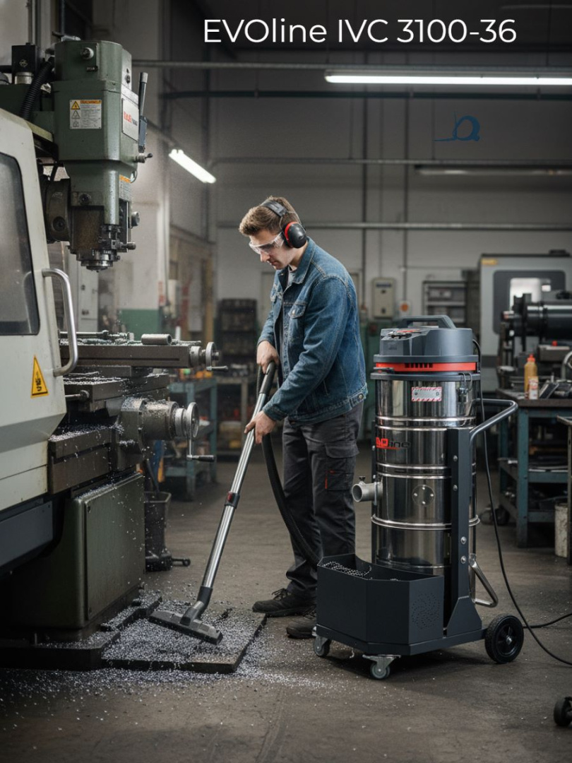 EVOline IVC 3100-36 удаляет опилки, стружку и металлическую пыль, обеспечивая чистоту и безопасность на рабочих местах. Он идеально подходит для использования в деревообрабатывающих и металлообрабатывающих цехах.