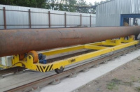 Передаточная рельсовая тележка для труб г/п 6 тонн с автопозиционированием груза и системой подачи труб под плазменную резку - внутрицеховая тележка на рельсовом ходу (ОМП Россия) для транспортировки тяжелых производственных грузов.