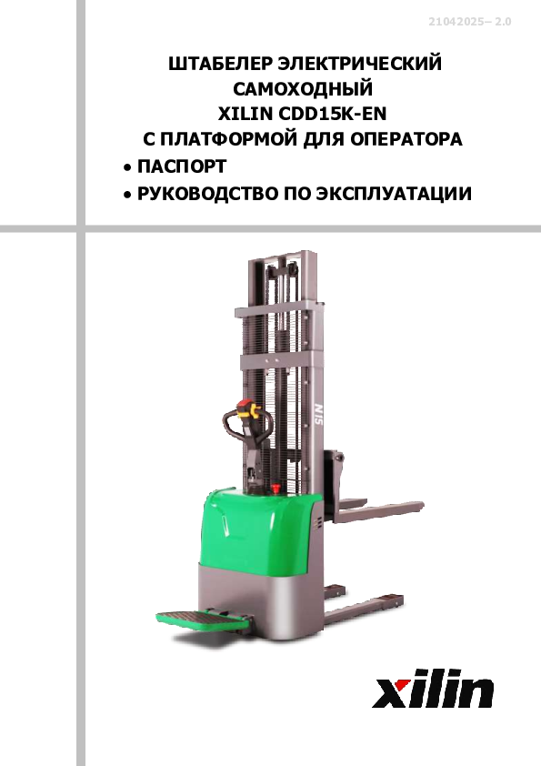 Самоходный штабелер с платформой 1,5 т 1,6 м XILIN CDD15K-EN 24/105 В/Ач