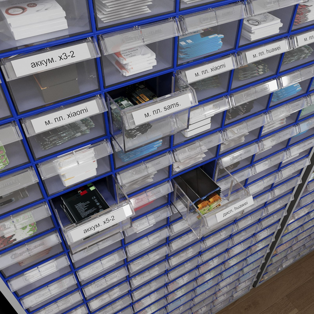 Одной из главных особенностей этого шкафа является возможность компактно разместить большое количество стандартных контейнеров. Это особенно важно для складов и офисов, где пространство ограничено.