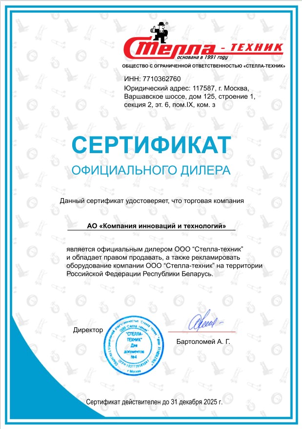 АО «Компания инноваций и технологий» является официальным дилером и дистрибьютором в Москве крупнейших производителей ПТО, мировых производителей оборудования и техники для склада и производства. Мы предоставляем официальную гарантию на всю поставляемую технику и оборудование, а также несем гарантийные обязательства. Срок гарантии и условия предоставления зависят от производителя и типа техники. На многие типы техники имеется дополнительная гарантия. Подробности уточняйте в коммерческом или сервисном отделе.