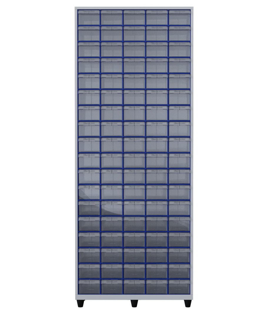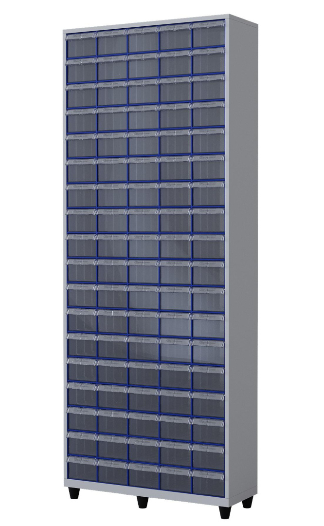 Модульная система хранения - шкаф с выдвижными ящиками, лотками, ячейками Стелла-техник С-2-90 на 90 коробов для хранения мелких деталей, метизов, изделий и ТМЦ на складе, производстве и в магазине.