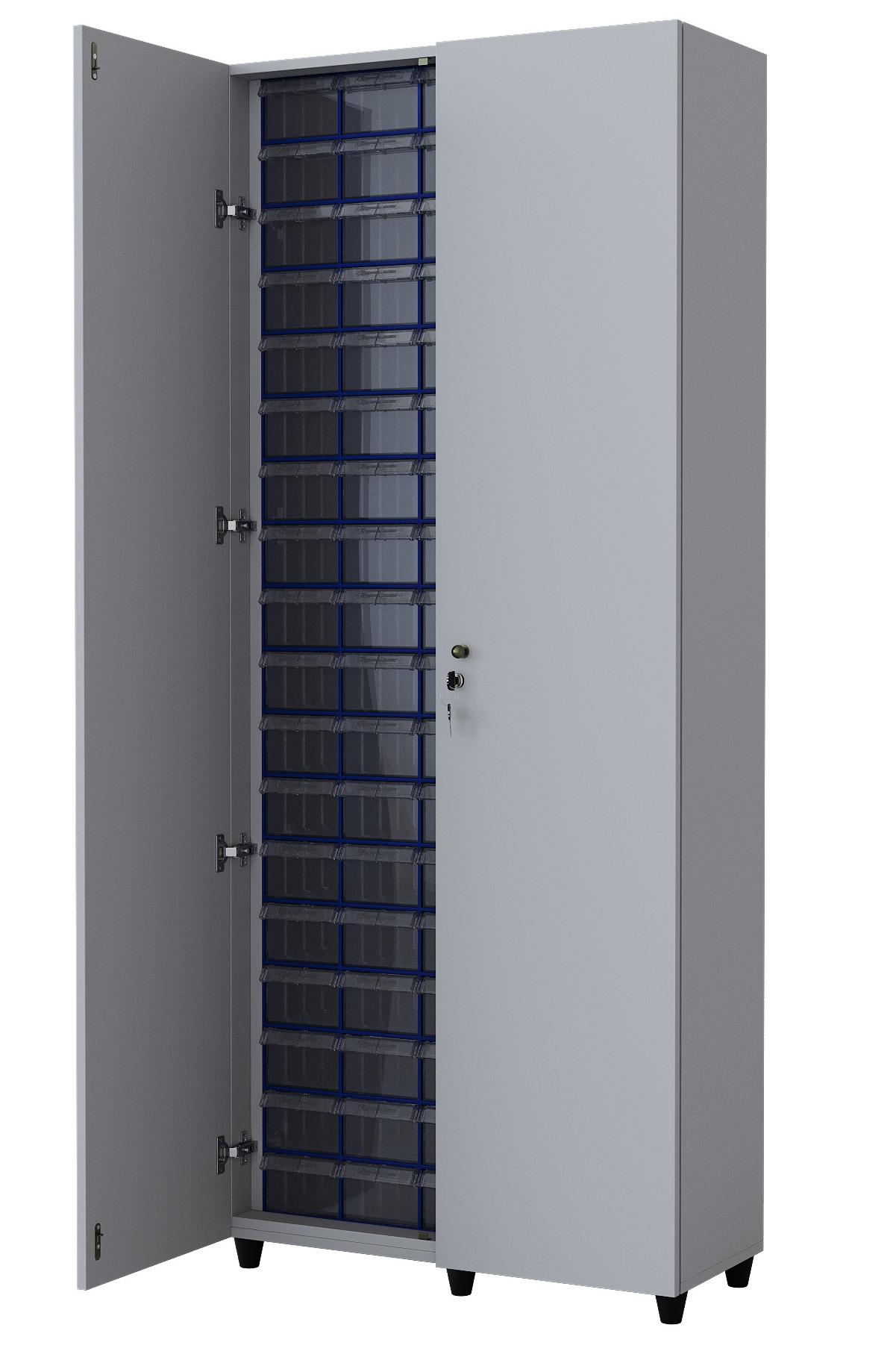 Шкаф с дверьми Стелла-техник С-2-90Д на 90 коробов, ЛДСП С-2-90Д для хранения мелких деталей, метизов, изделий и ТМЦ на складе, производстве и в магазине.