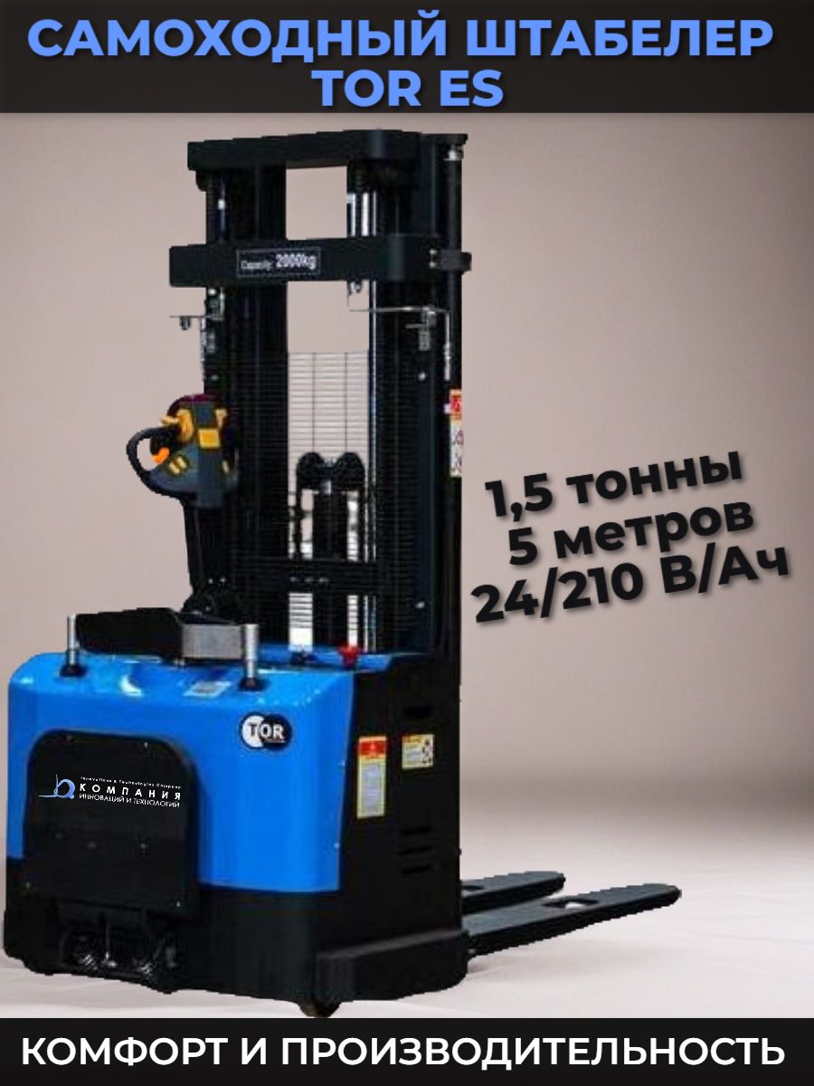 Самоходный электроштабелер TOR ES15T 1,5 т 5.0 м 24/210 В/Ач ЭУР, Curtis, H-мачта - наш флагман на складе