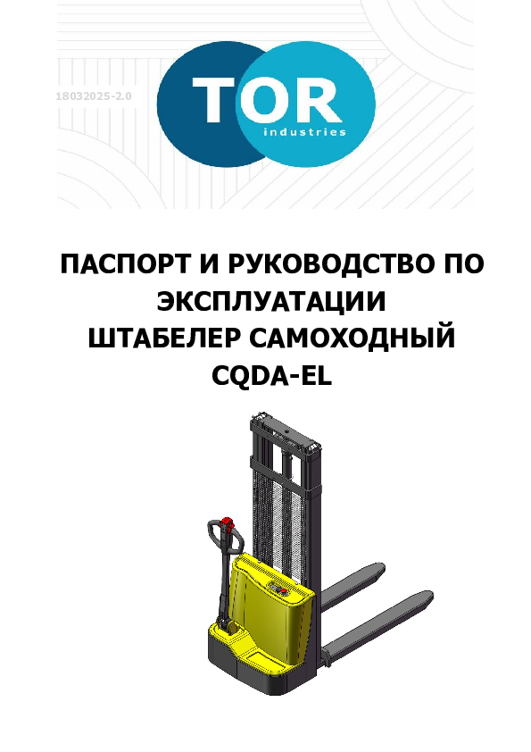 Штабелер самоходный 1,2 т 2,5 м TOR CQDA1225-EL Li-ion 24/50 В/Ач
