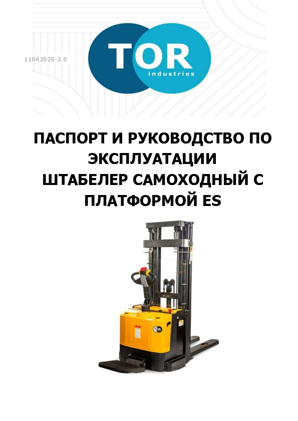 Электрический самоходный штабелер 2,0 т 3,5 м TOR ES20D4 24/210 В/Ач ЭУР, Curtis, H-мачта (с платформой) — незаменимый помощник на складе, в производстве и магазине.