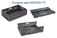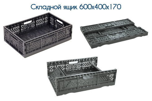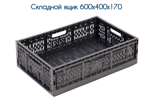 Пластиковый перфорированный ящик складной с размерами 600 х 400 х 170 мм российского производства для универсального применения в виде оборотной тары в производстве, магазине и на складе.