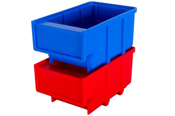 - Компактные сплошные полипропиленовые ящики для склада объемом 0.83 л синего или красного цвета на передней стенке имеют специальное место для размещения ярлыков, что позволяет легко определить содержимое каждого ящика на складе.
