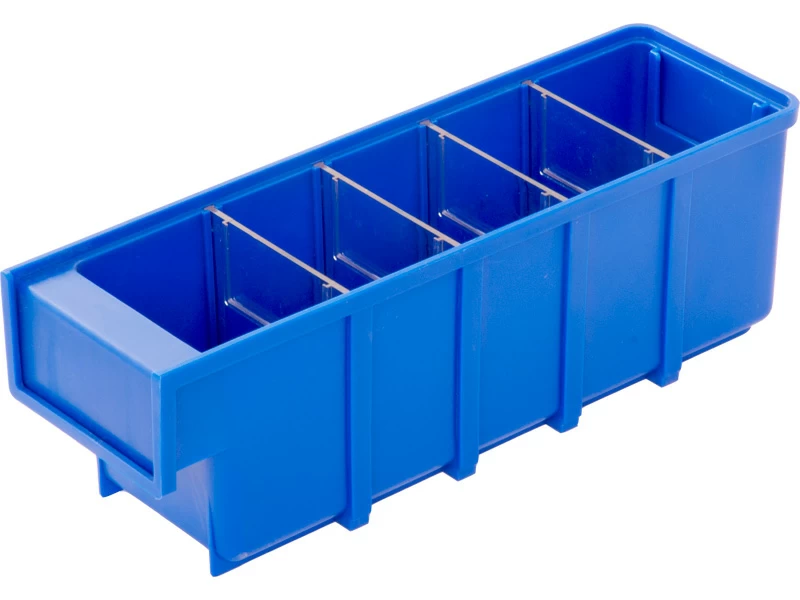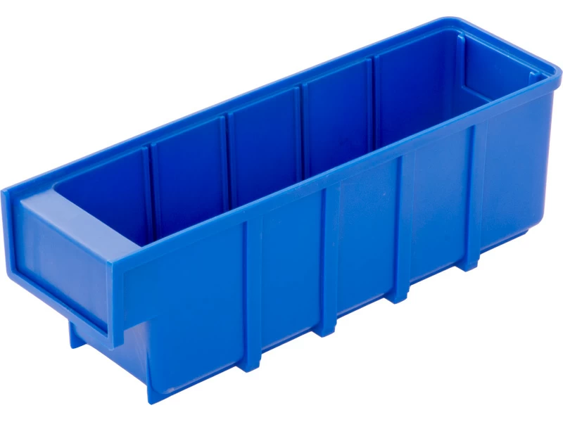 Пластиковый синий складской ящик лоток 6005 размерами 300x92x100 мм российского производства для хранения мелких деталей и тмц: метизов, крепежа, инструментов, медикаментов на производстве, складе, в магазине, дома и в гараже.
