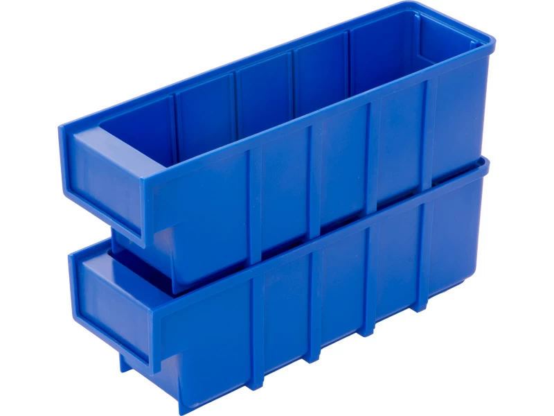 - Пластиковые штабелируемые сплошные складские ящики объемом 2 л комплектуются поперечными перегородками для удобства хранения различных деталей в независимых отделах внутри одного контейнера.
