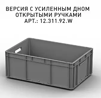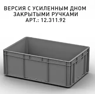 Сплошной евроконтейнер ЕС-6422 (600x400x220) мм с гладким дном, закрытая ручка