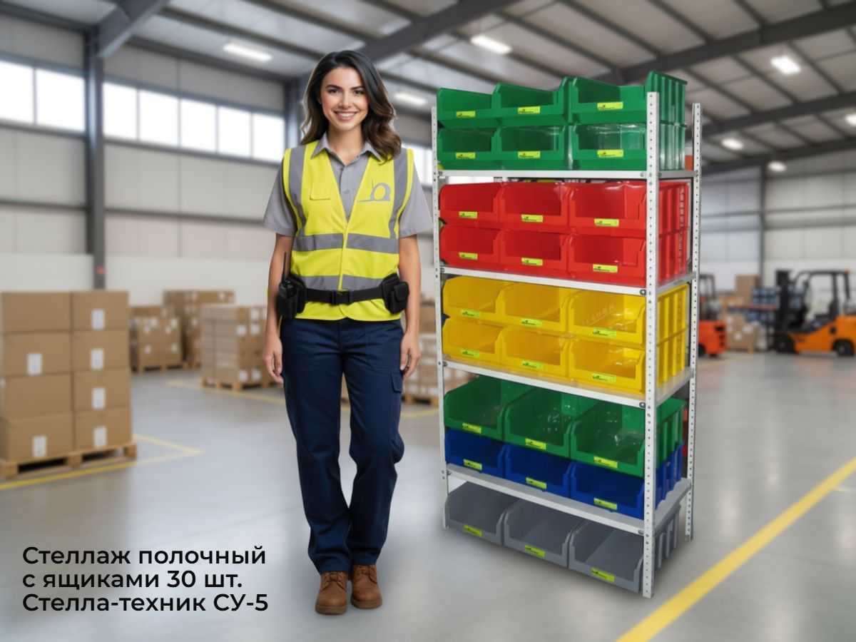 Стеллаж с полками и ящиками 30 шт. в комплекте Стелла-техник СУ-5
